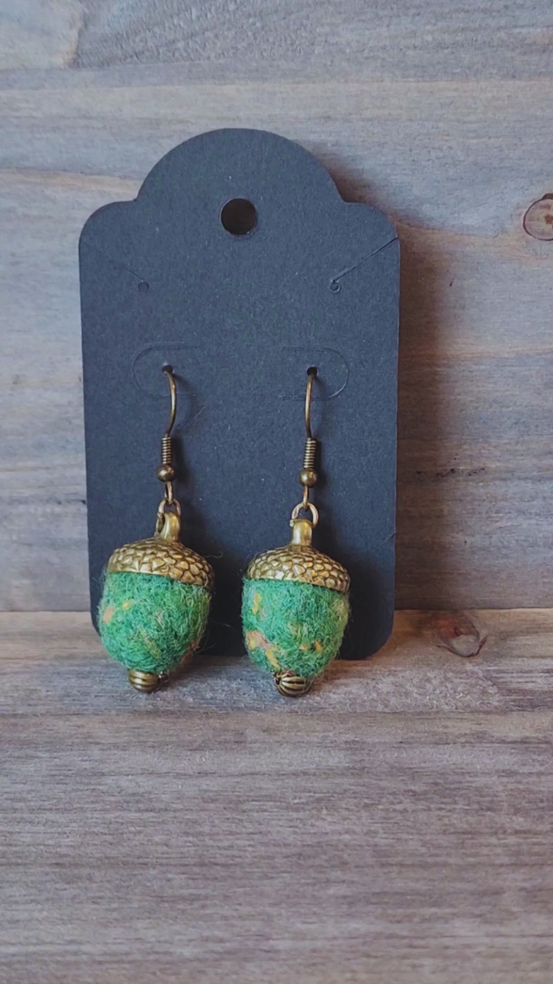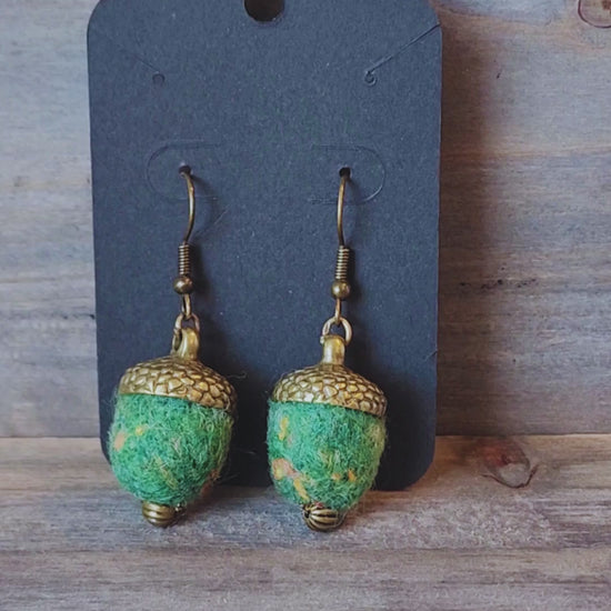 Handmade Needle Felted Acorn Earrings - Lightweight & Unique