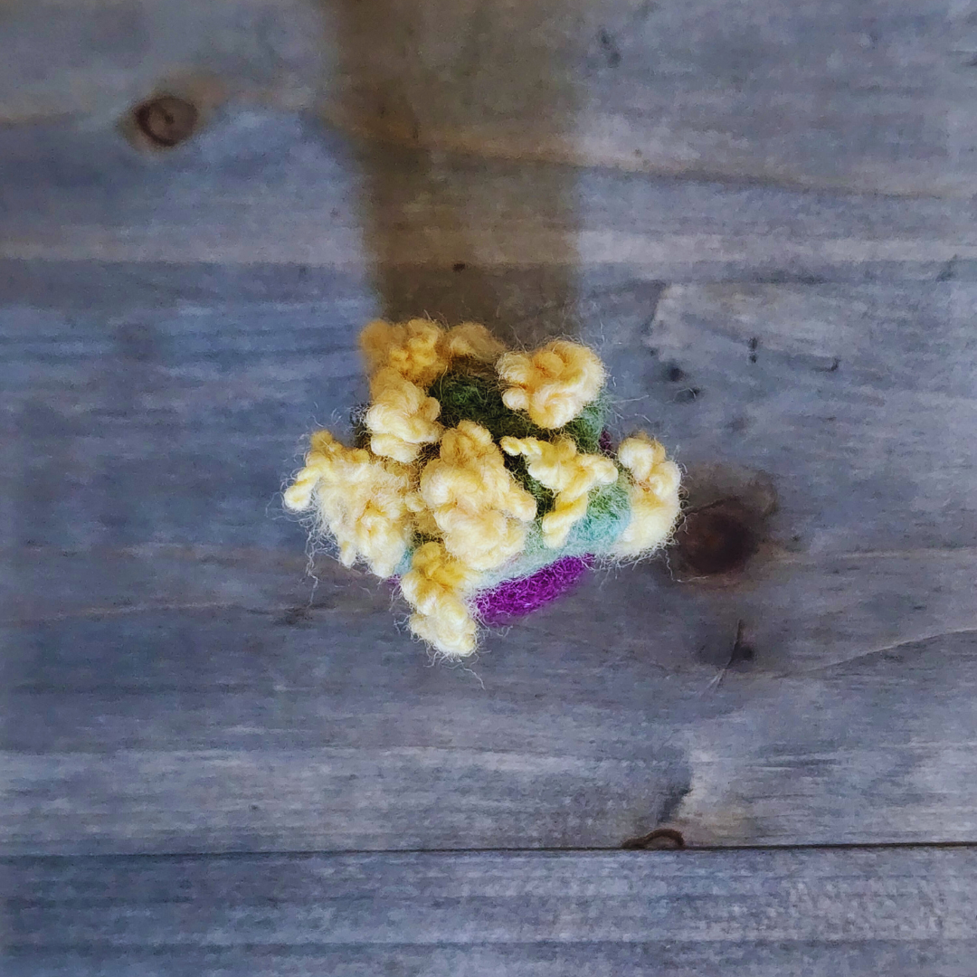 Handmade Wool Needle-Felted Mini Flowering Prickly Pear Cactus - Whimsical & Thistle-Free Blooms!