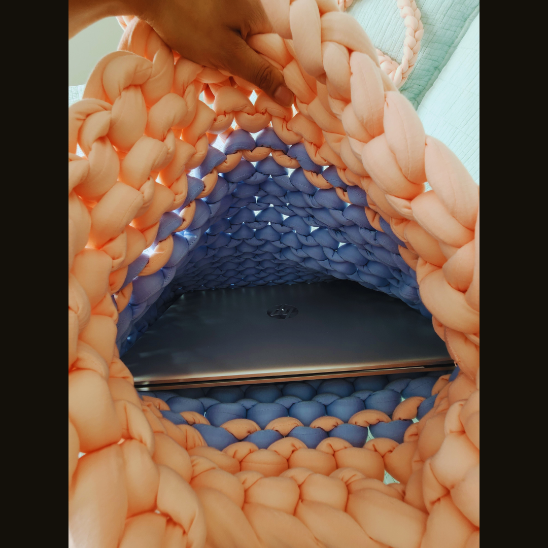 I lovingly hand crochet each tote, using a unique single stitch pattern that gives the bag a wonderful texture and ensures its durability. It's crafted from a cozy knit yarn with a stretch polyester core, making it not only soft to the touch but also robust enough to carry all your essentials. This bag is truly the perfect everyday tote, spacious enough to comfortably fit your large laptop, notebooks, and so much more!